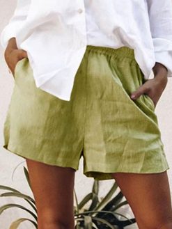 Elastic Waist Cotton Linen Casual Ladies Shorts