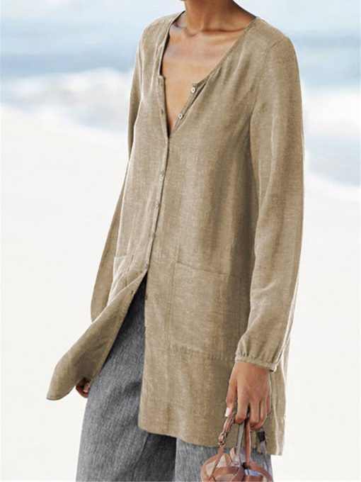V Neck Plaid Linen Blouse